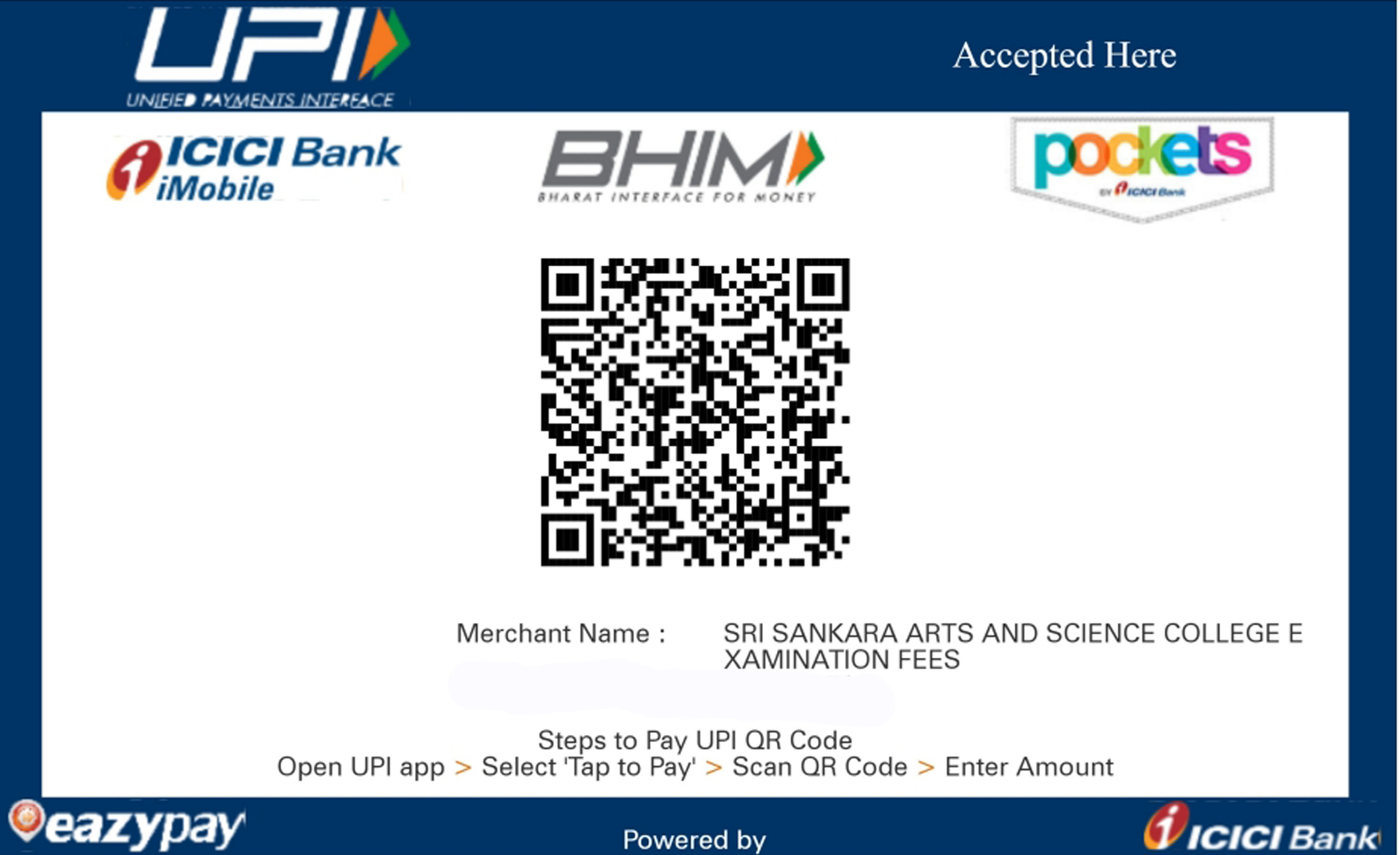 Note: Students should provide Register Number, Roll Number and Name during transaction through add a note or message option in the payment tool.